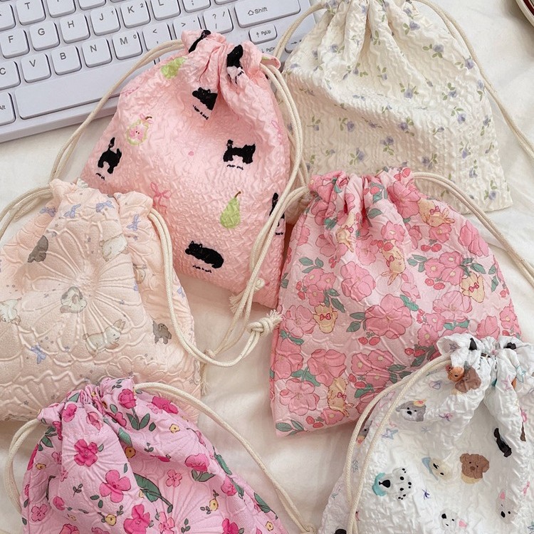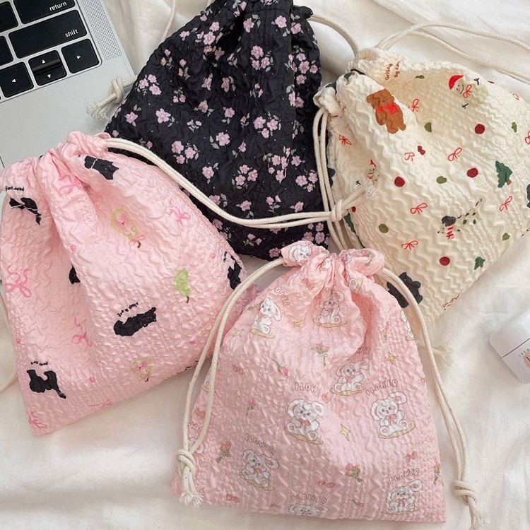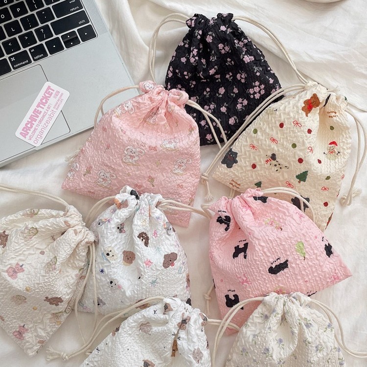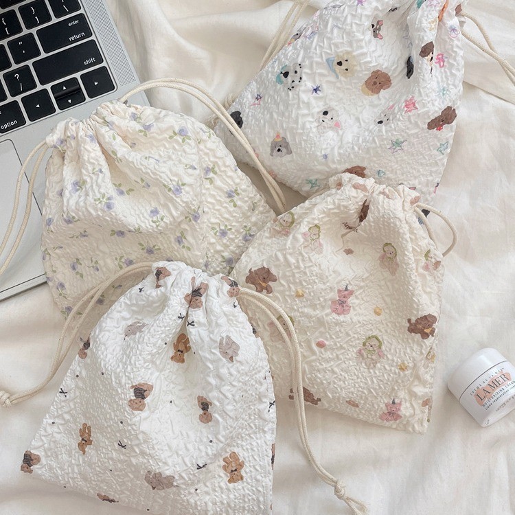 48151束口袋可爱小熊卡通抽绳杂物收纳袋防尘便携整理多功能布袋
