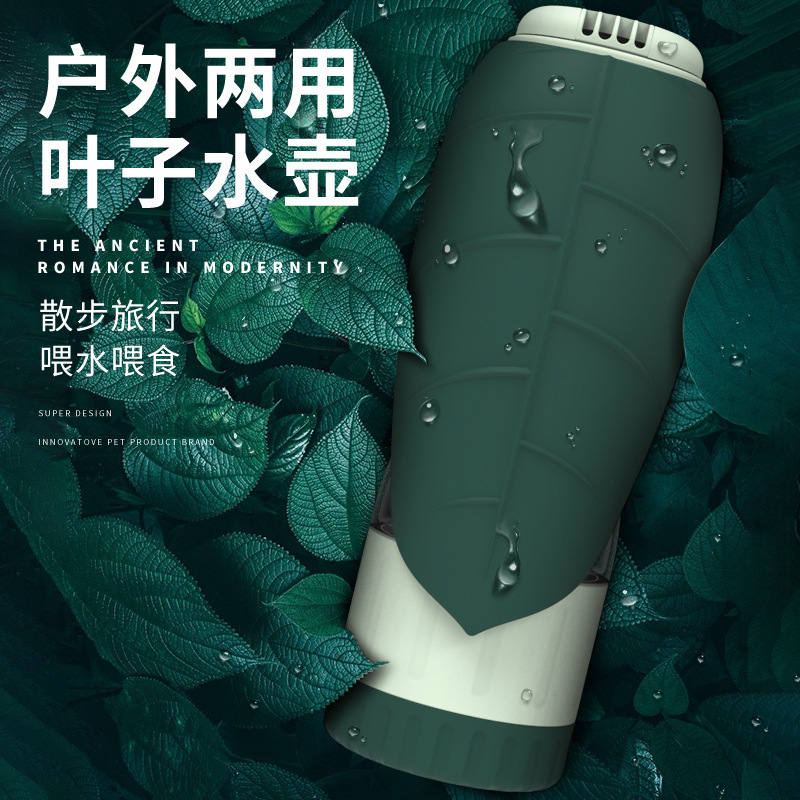 休普狗狗户外饮水杯宠物用品外出水壶遛狗两用粮壶硅胶树叶喂水瓶