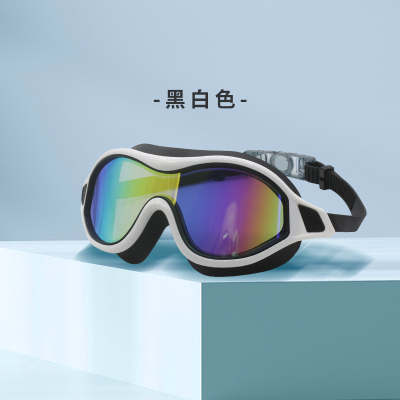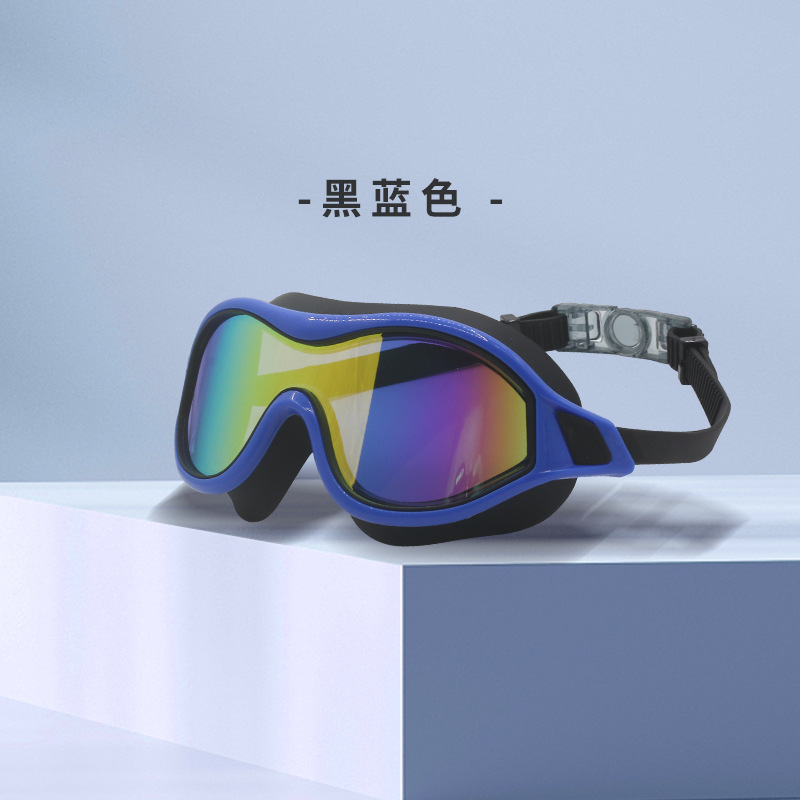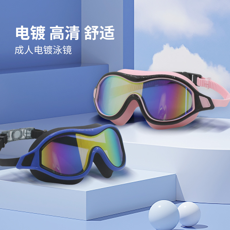 成人大框游泳镜电镀高清泳镜硅胶眼镜防水防雾镀彩护目镜现货批发