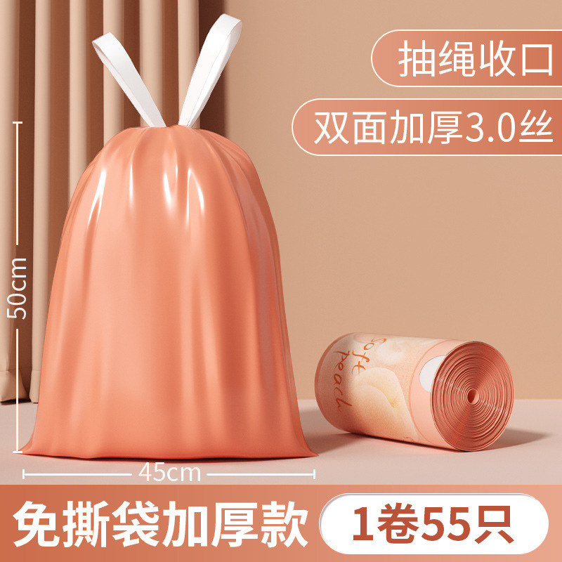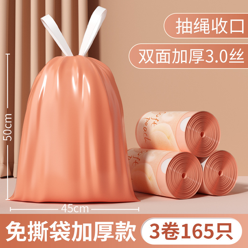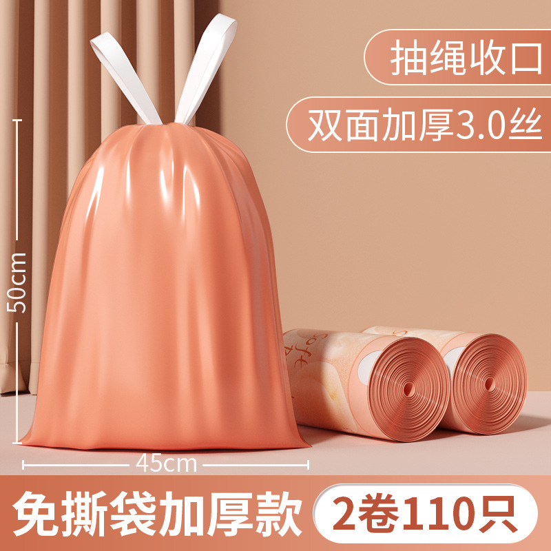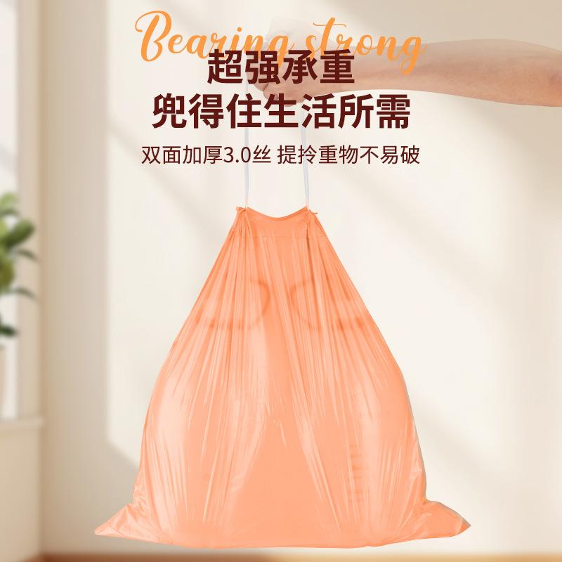 桃色免撕抽绳垃圾袋加厚不易破收口垃圾袋手提式塑料袋家用厨房