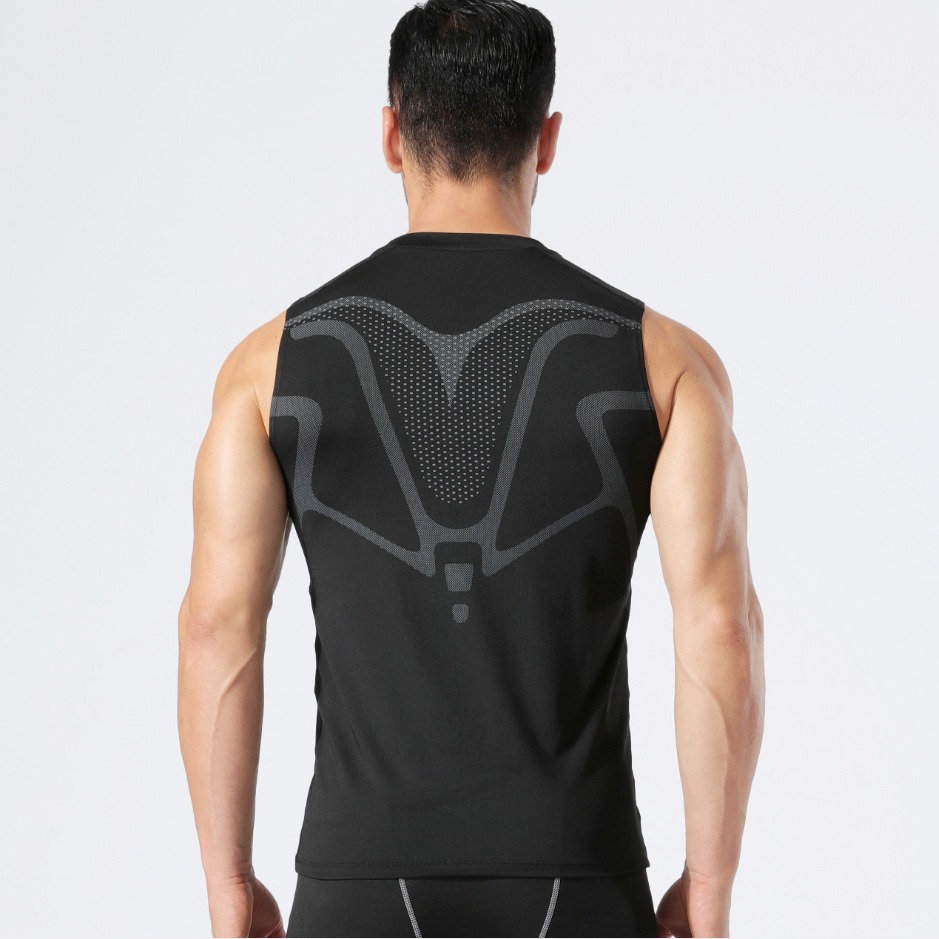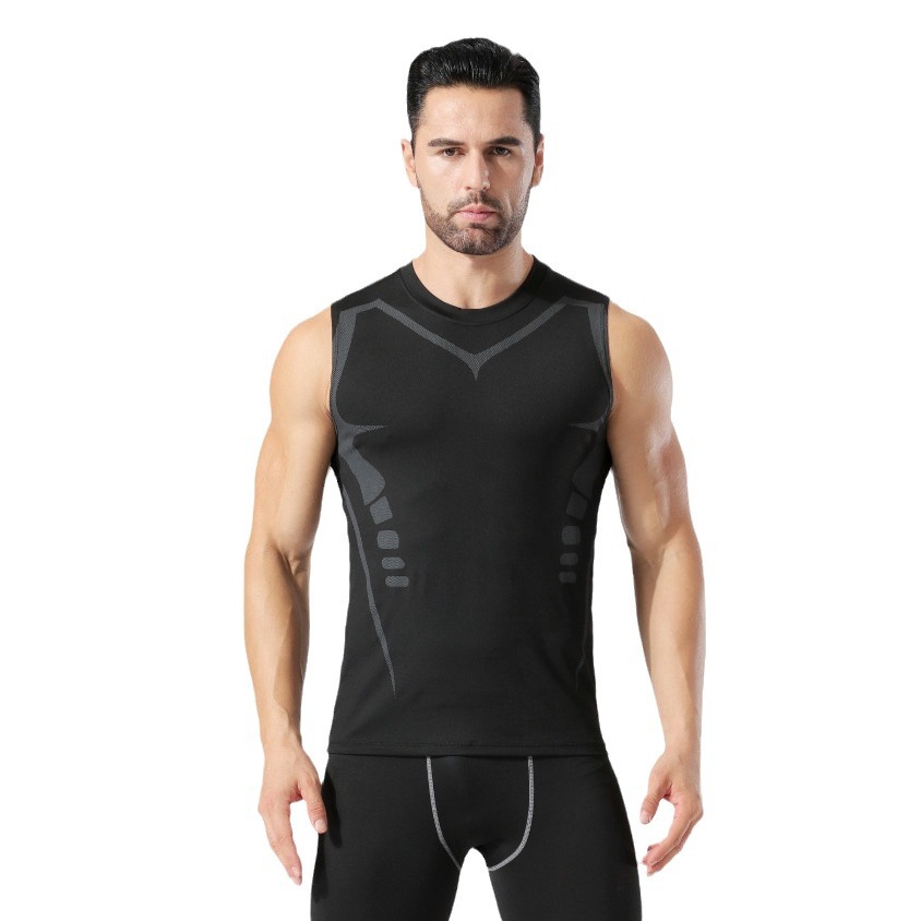 无袖速干背心男晨跑篮球跑步运动训练背心弹力压缩印花运动紧身衣