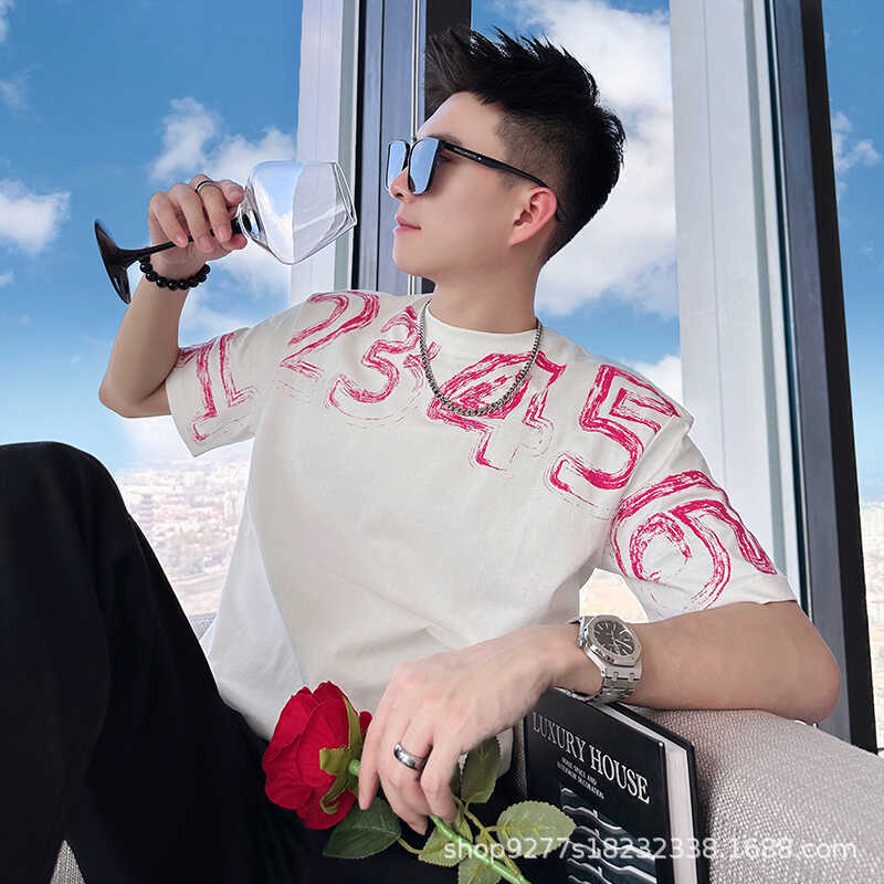ins潮牌印花T恤男新款短袖夏季痞帅爆款圆领潮流休闲棉体恤