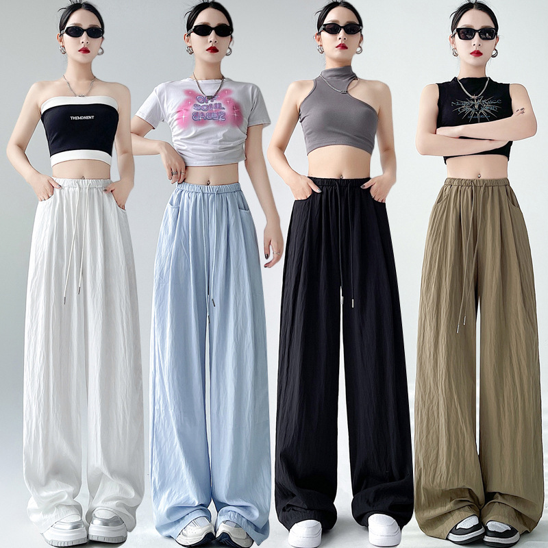 美式街头设计感阔腿工装裤女夏季宽松大口袋抽绳拖地裤运动休闲裤