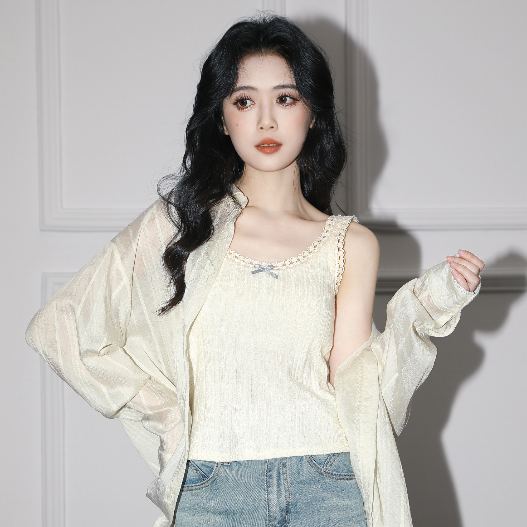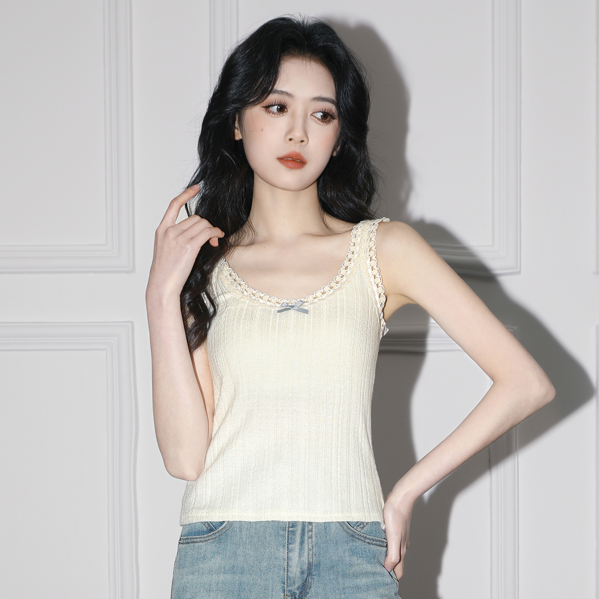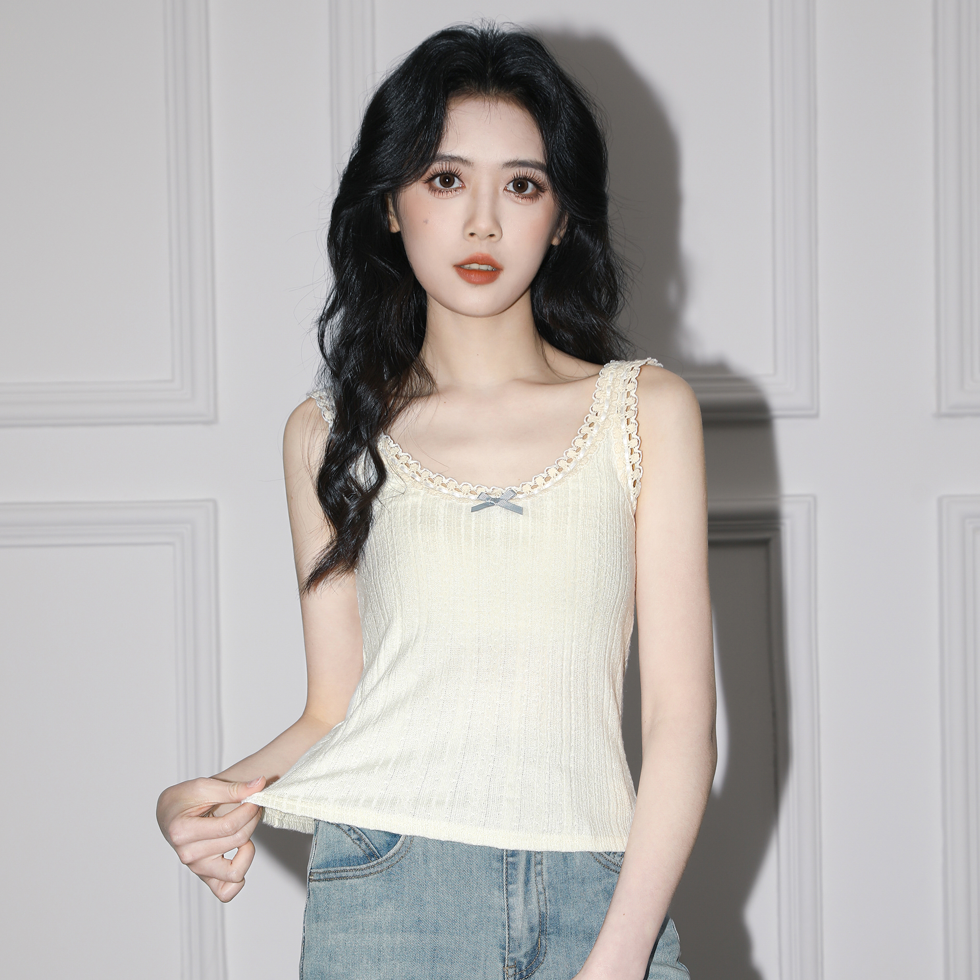 蕾丝边吊带背心女夏外穿2025夏季新款蝴蝶结内搭打底无袖短款上衣