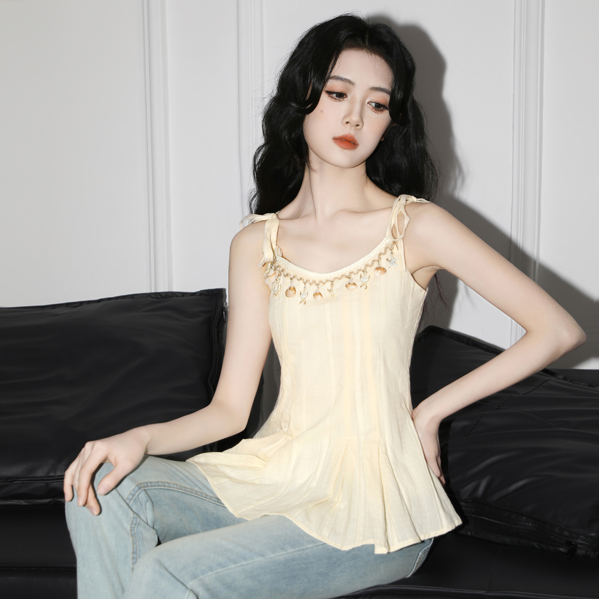 复古吊带背心女夏外穿2025夏季新款法式刺绣收腰显瘦无袖短款上衣