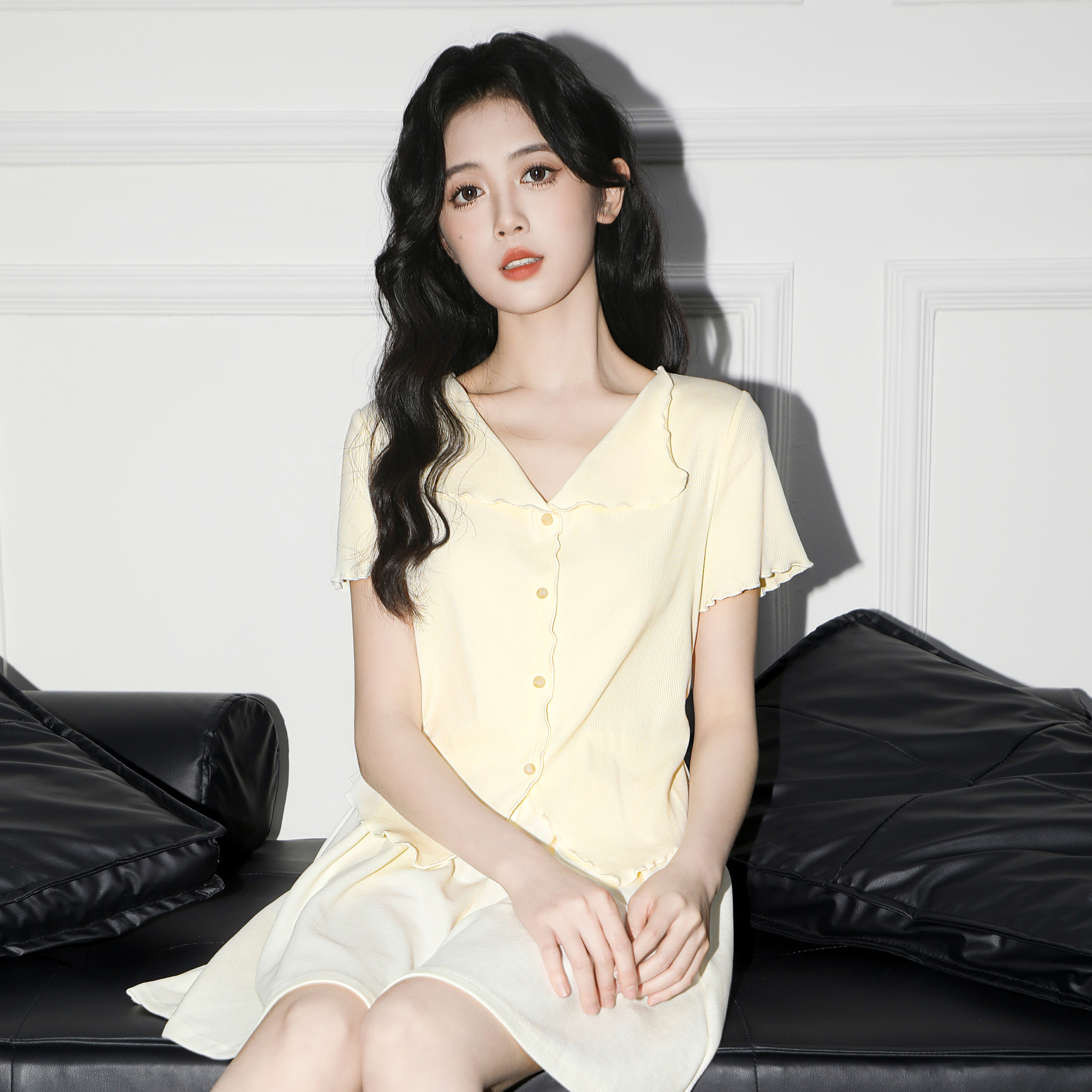 新款涤纶可爱短袖睡衣套装粉色小王子休闲时尚少女清新家居服