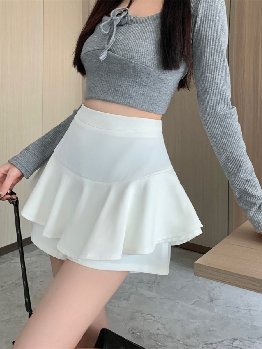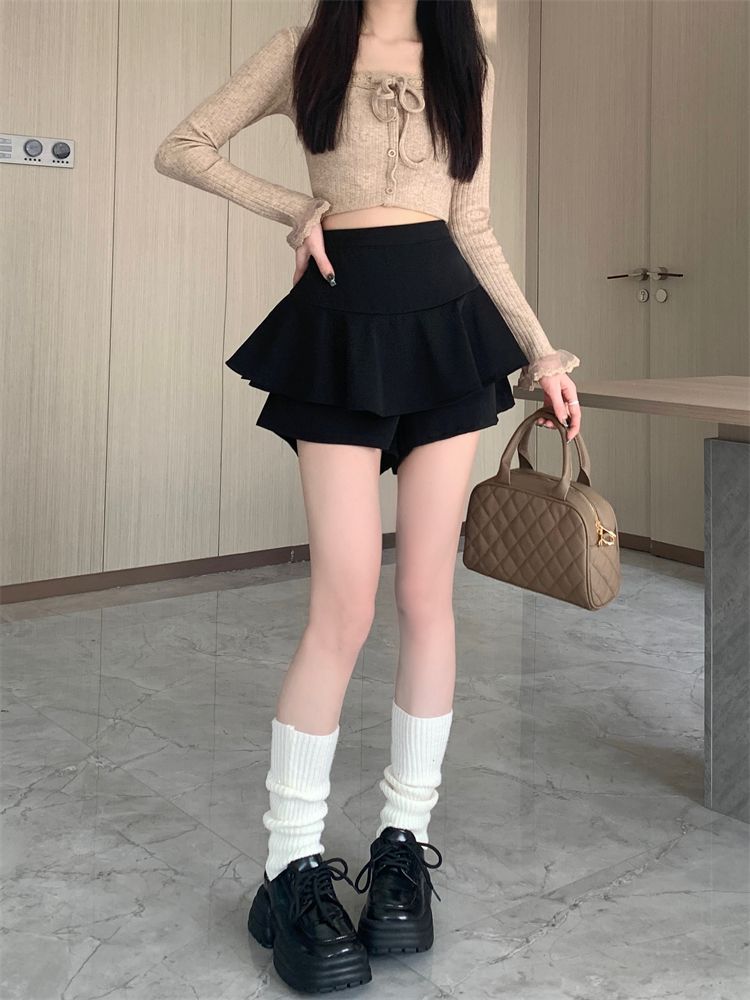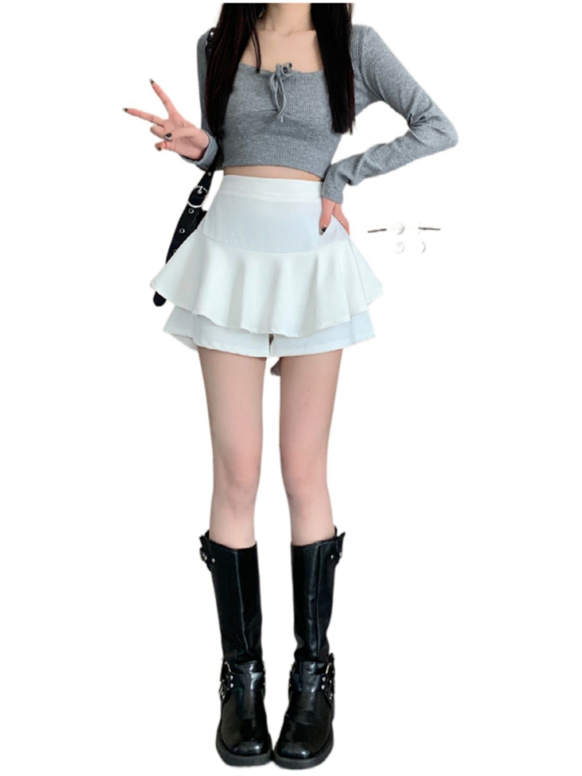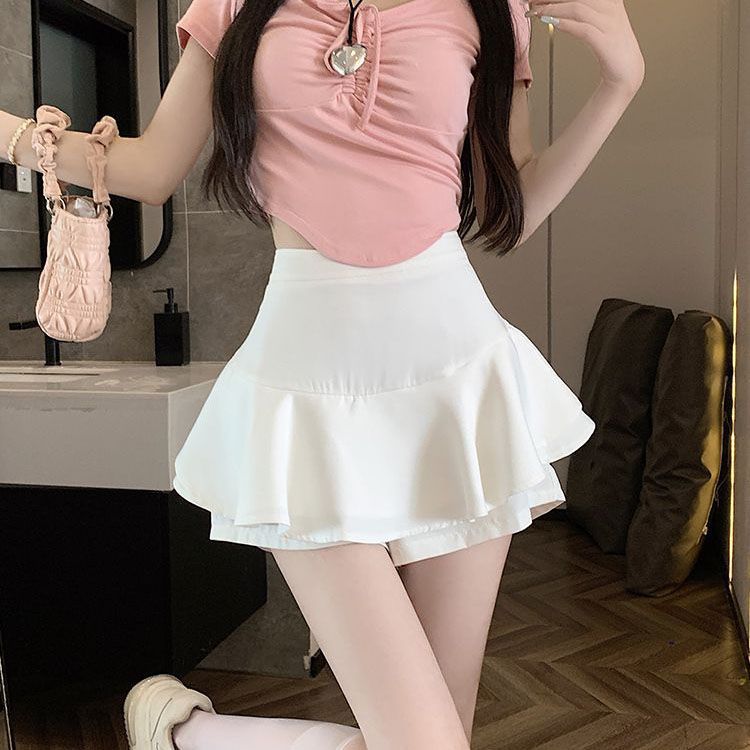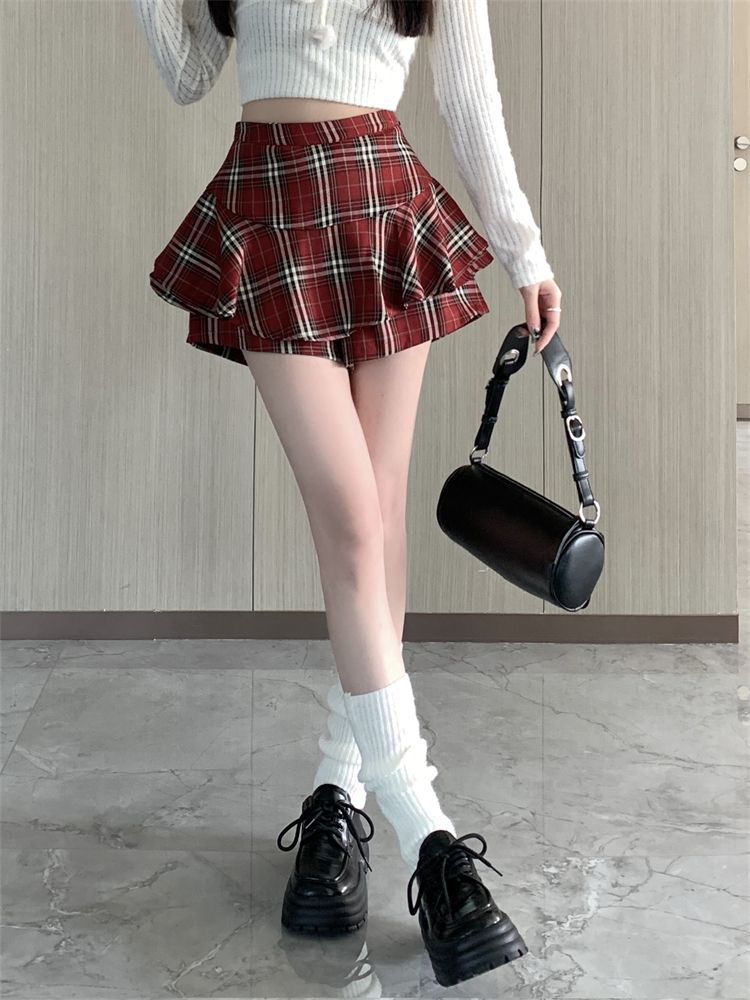 泰国夏季新款高腰显瘦复古格纹气质百搭半身裙设计感荷叶边短裙子