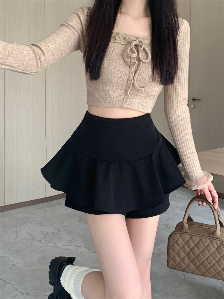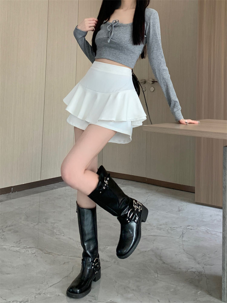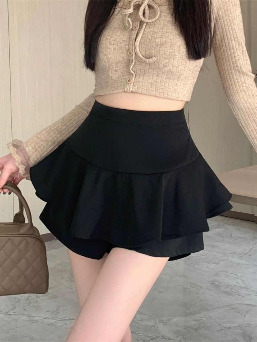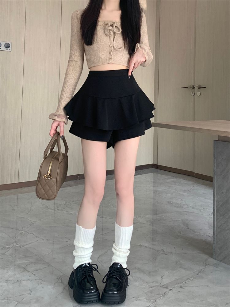 泰国夏季新款高腰显瘦复古格纹气质百搭半身裙设计感荷叶边短裙子