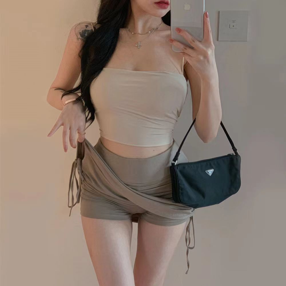 【月销10万】性感辣妹高腰褶皱遮肉裙裤防走光抽绳超短裙包臀裙