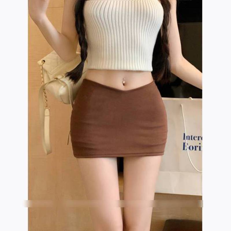 杏色辣妹女夏季紧身显瘦包臀短裙高腰半裙子a字裙裤