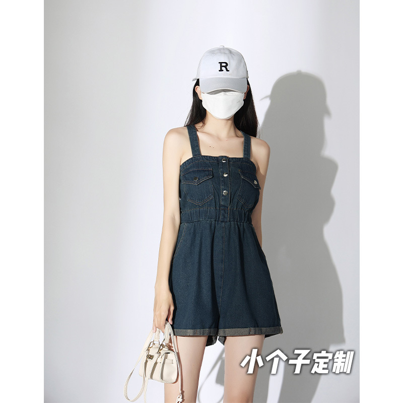 150小矮个子甜酷工装背带裤女145收腰吊带连体牛仔短裤xs显高春夏