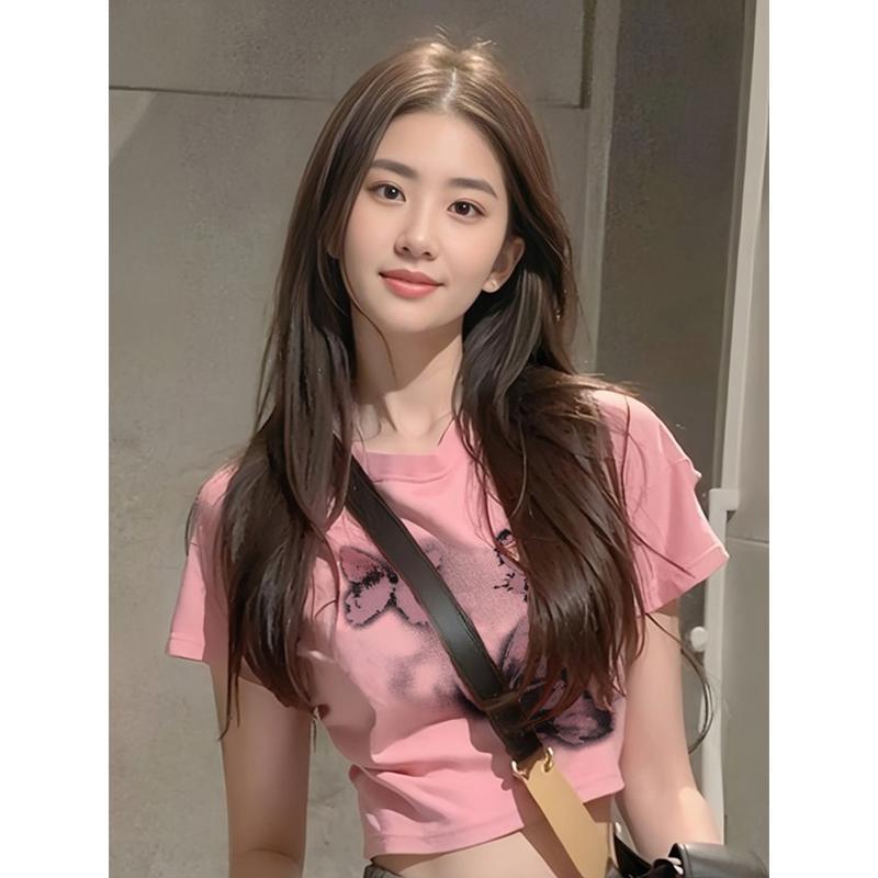 美式辣妹风正肩短袖t恤女装夏季新款设计感独特别致内搭减龄上衣