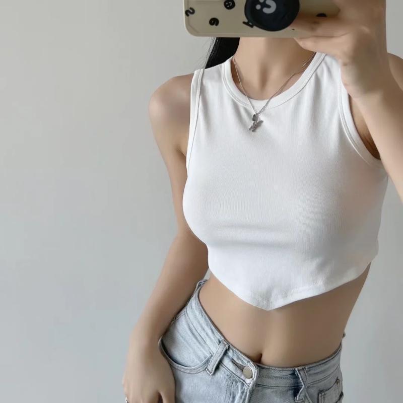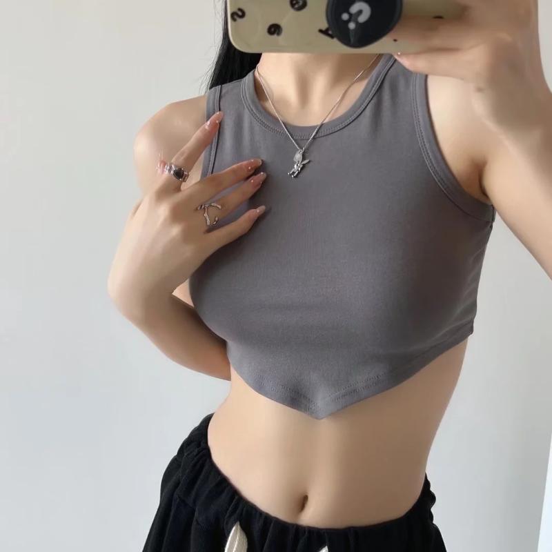 宝蓝色不规则下摆吊带背心女短款紧身夏新款辣妹纯欲内搭外穿露脐