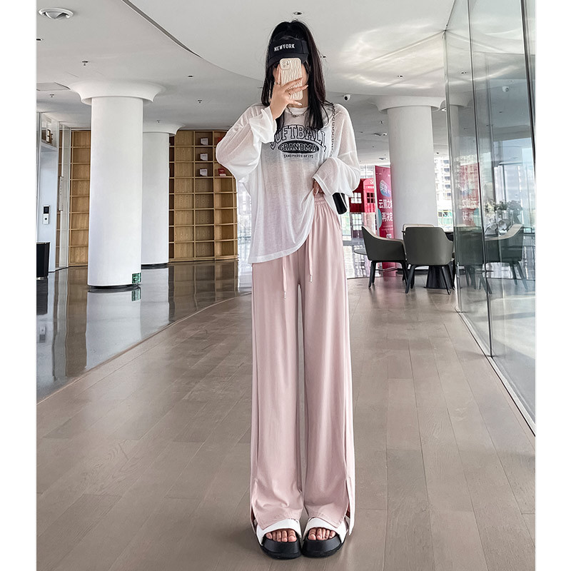 粉色防晒裤女薄款春夏新款高腰宽松直筒冰丝阔腿裤休闲阔腿裤