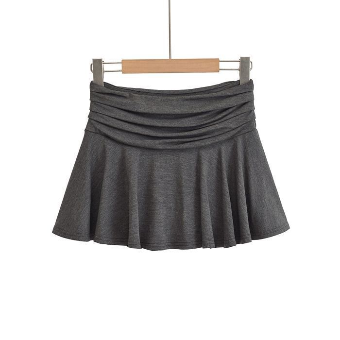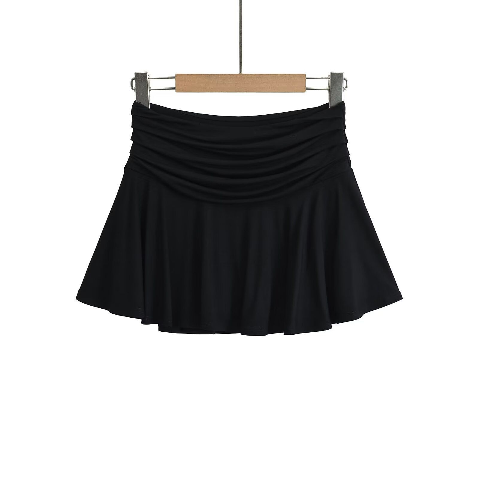 性感纯色辣妹A字半身裙显瘦腰纯欲芭蕾带安全裤短裙