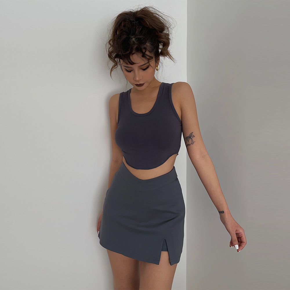 夏日正式复活辣妹爱穿款弧形运动背心显瘦外穿短款上衣健身性感