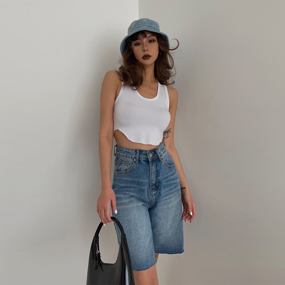 圆领正肩无袖小吊带夏季女款爆款小众高街潮牌收腰小个子短款上衣