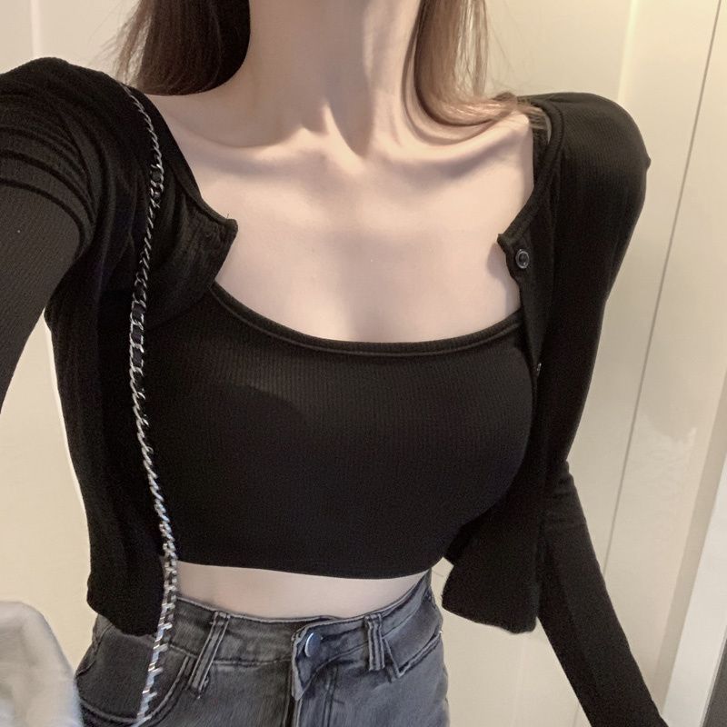 辣妹美背吊带女带胸垫可外穿运动背心夏季新款抹胸防走光短款上衣