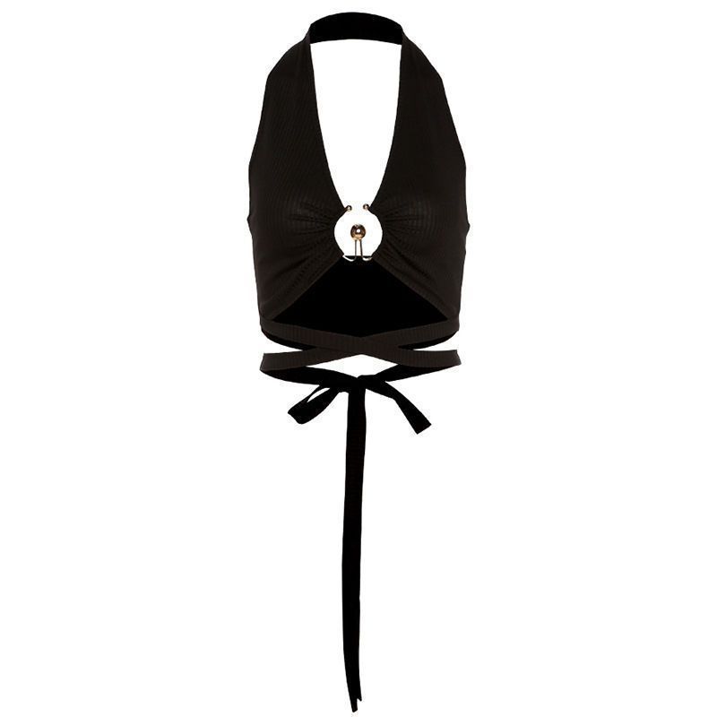 2025Slim solid color waistcoat纯色镂空时尚潮流挂颈小背心女装