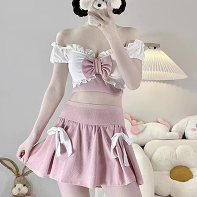 新款温泉泳衣女分体裙式平角显瘦ins风仙女范韩版女学生泳装