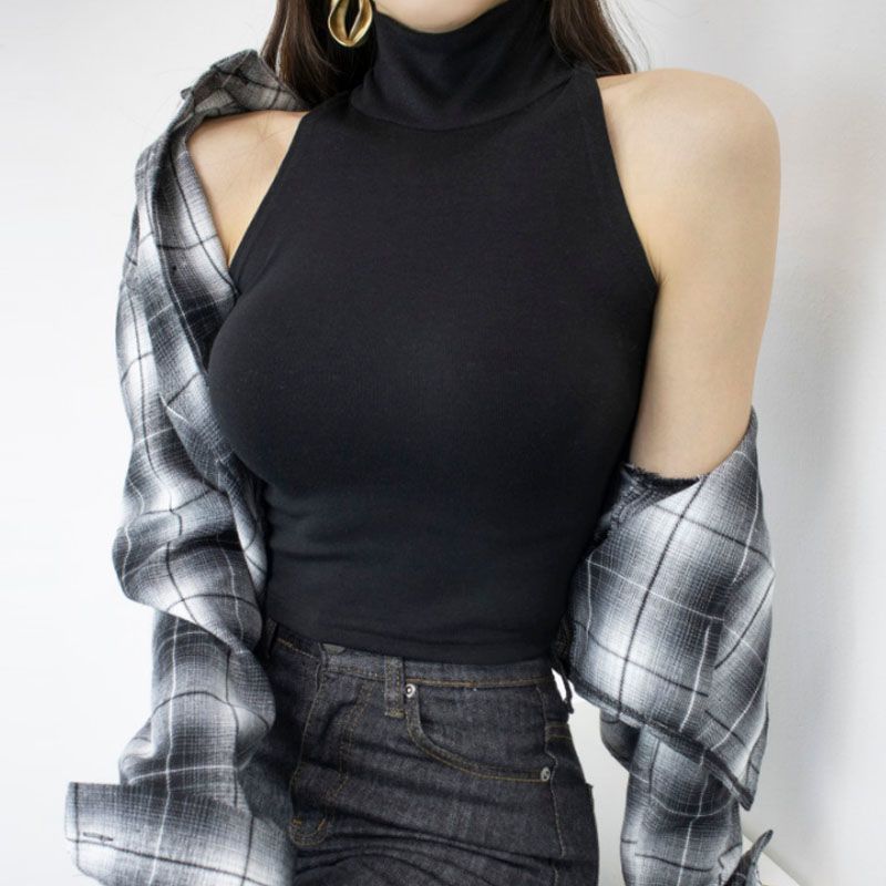 泰国 东南亚纯欲性感高领背心T恤挂脖露肩紧身上衣辣妹打底衫背心