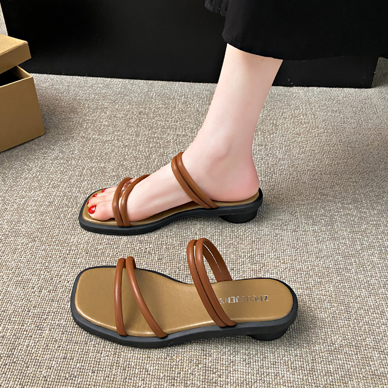 法式晚风一字拖鞋女夏季外穿2025年新款韩版仙女复古细带平底凉鞋