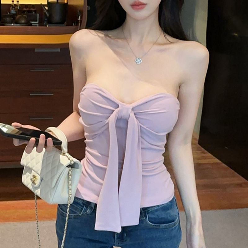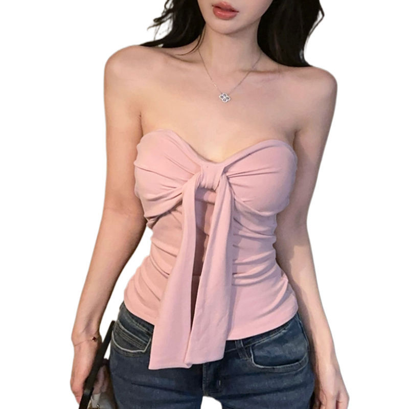 甜辣妹粉色纽结抹胸背心女2025年夏季新款性感纯欲风修身无袖吊带