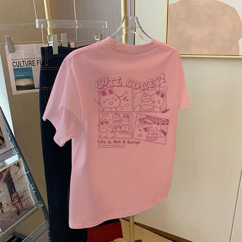 粉色兔子纯棉正肩短袖t恤女夏2025年新款宽松半袖上衣设计感ins潮