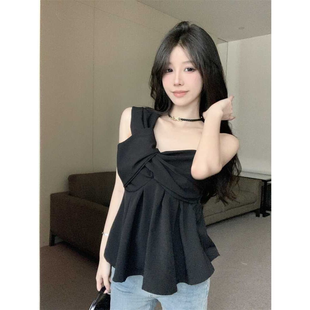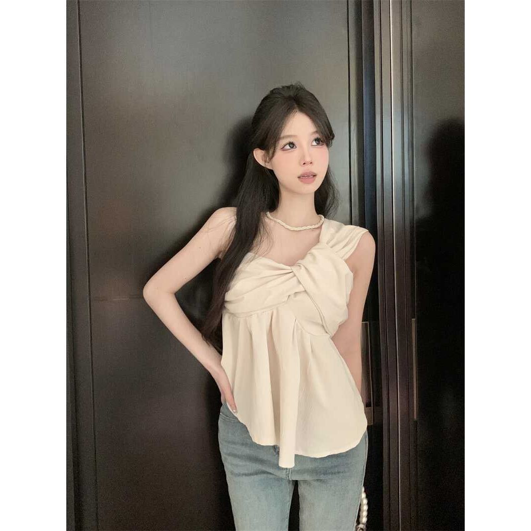 扭结吊带衬衫夏季短款收腰无袖上衣