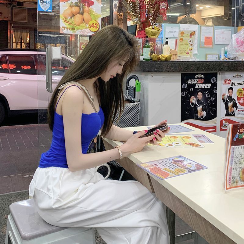 泰国带胸垫设计感细肩带背心纯欲修身显瘦简约外穿内搭吊带上衣女