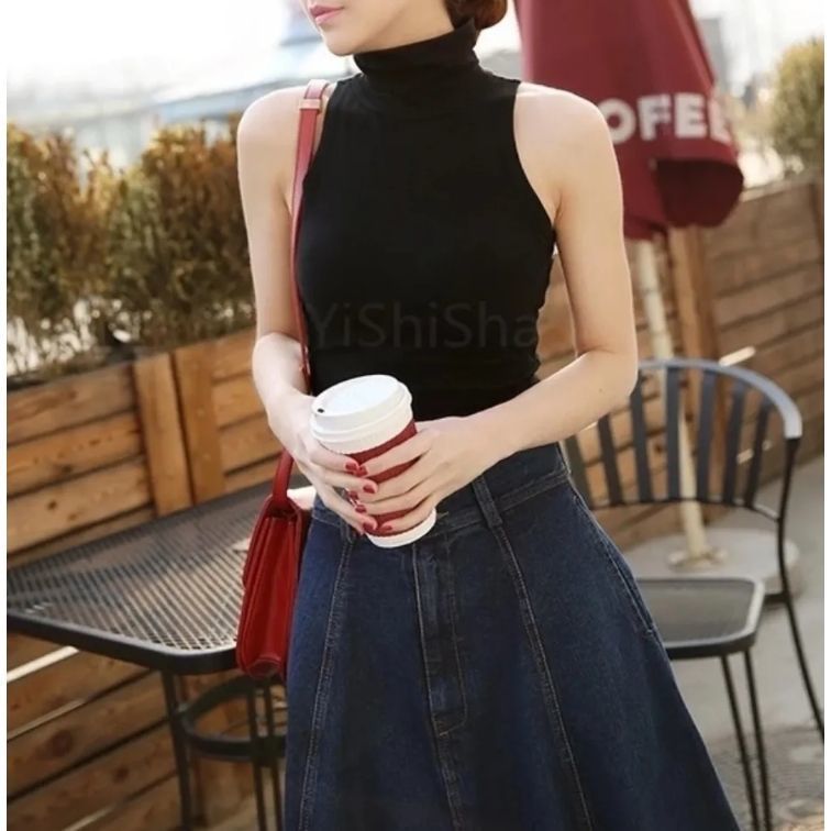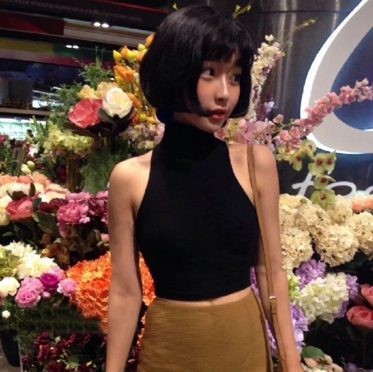 性感露脐辣妹短款无袖吊带女夏季半高领紧身性感上衣