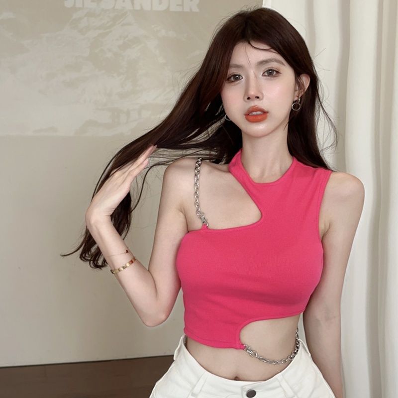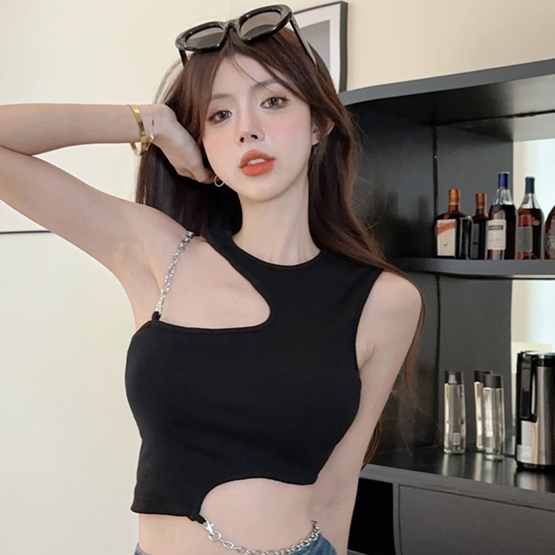 黑色不规则吊带背心内搭时尚性感夏季修身短款打底上
