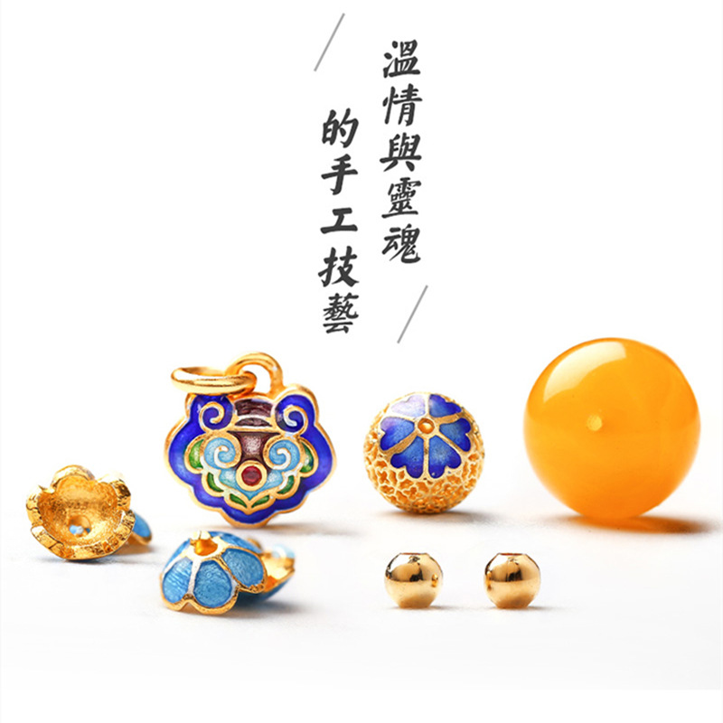 天然琥珀原石蜜蜡手串女玉石景泰蓝配饰鸡油黄满蜜老蜡手链