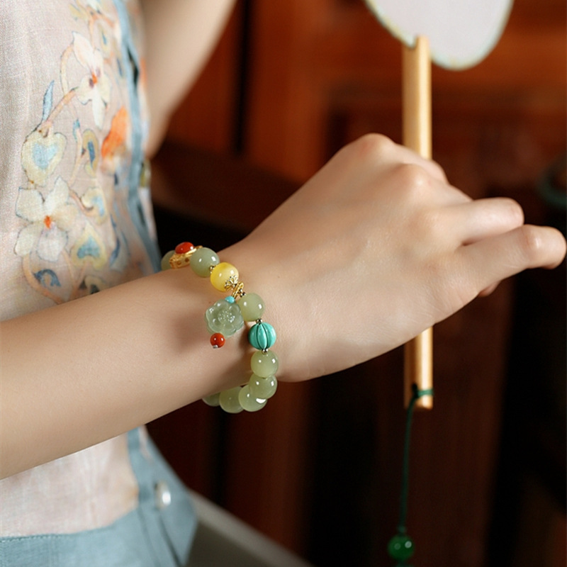 和田玉青玉手链女夏多宝水晶闺蜜玉石串珠时尚大方女款手链