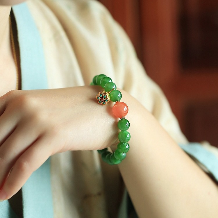 天然和田玉手串女单圈碧玉DIY手链民族风南红佛公玉石手饰圆珠9mm