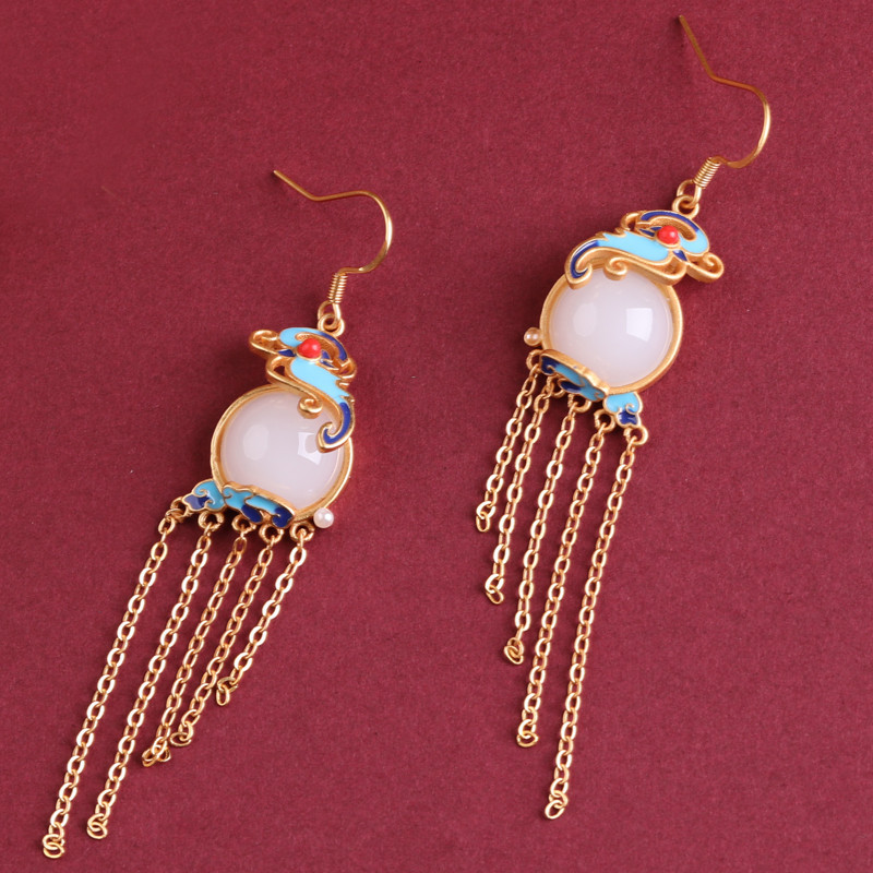 中国风纯银耳饰祥云珐琅彩绘复古宫廷流苏耳环汉服耳坠女
