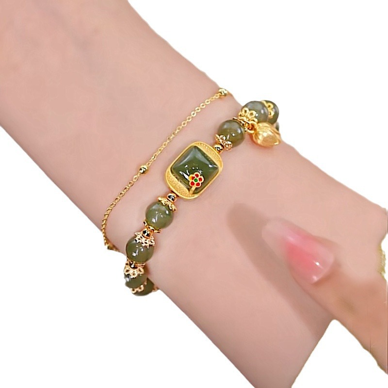 高级感方糖莲花双层手链女玉髓珠子小众设计气质手串