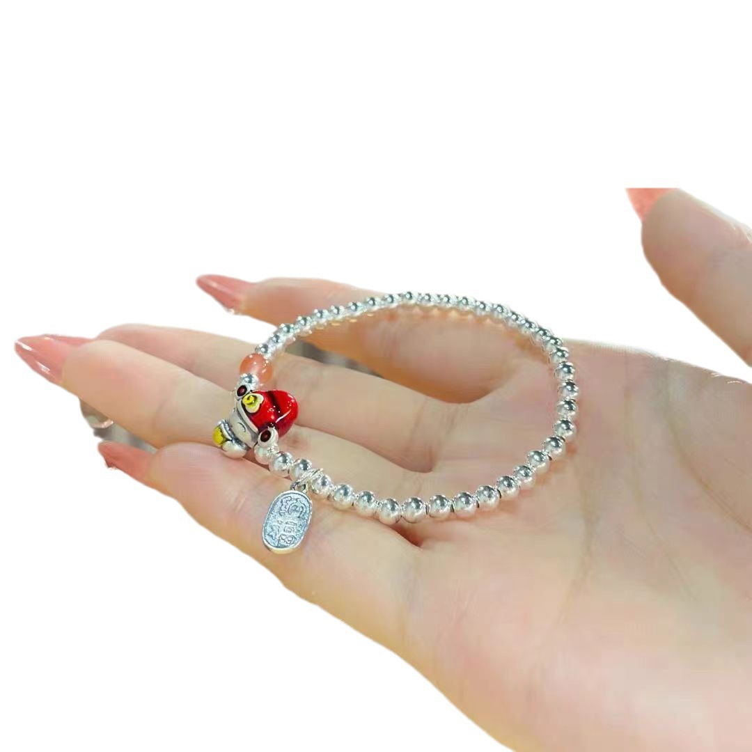 999足银财神戒指环手链女爆款中国风纯银小财神戒指节日礼物