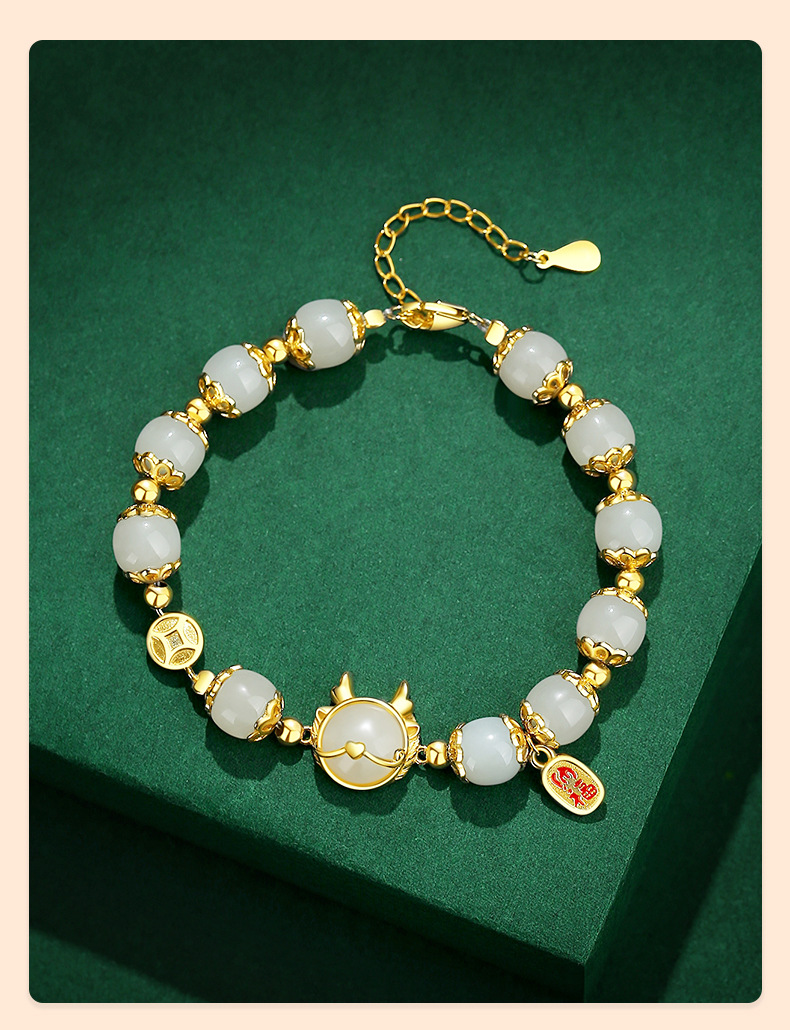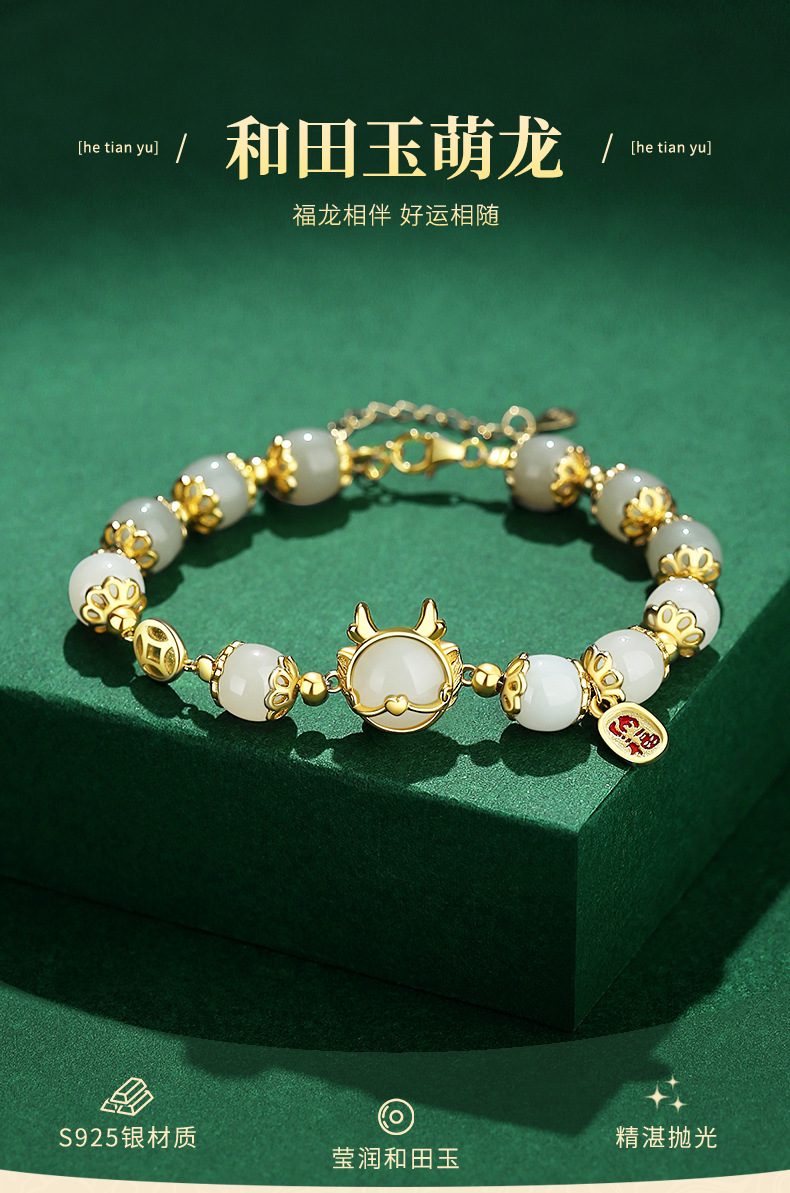 萌龙纳福和田玉纯银手链女款龙年本命年手串属龙新年礼物送女友
