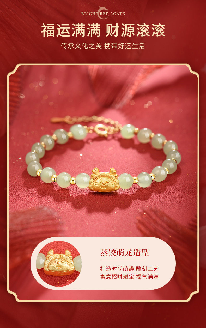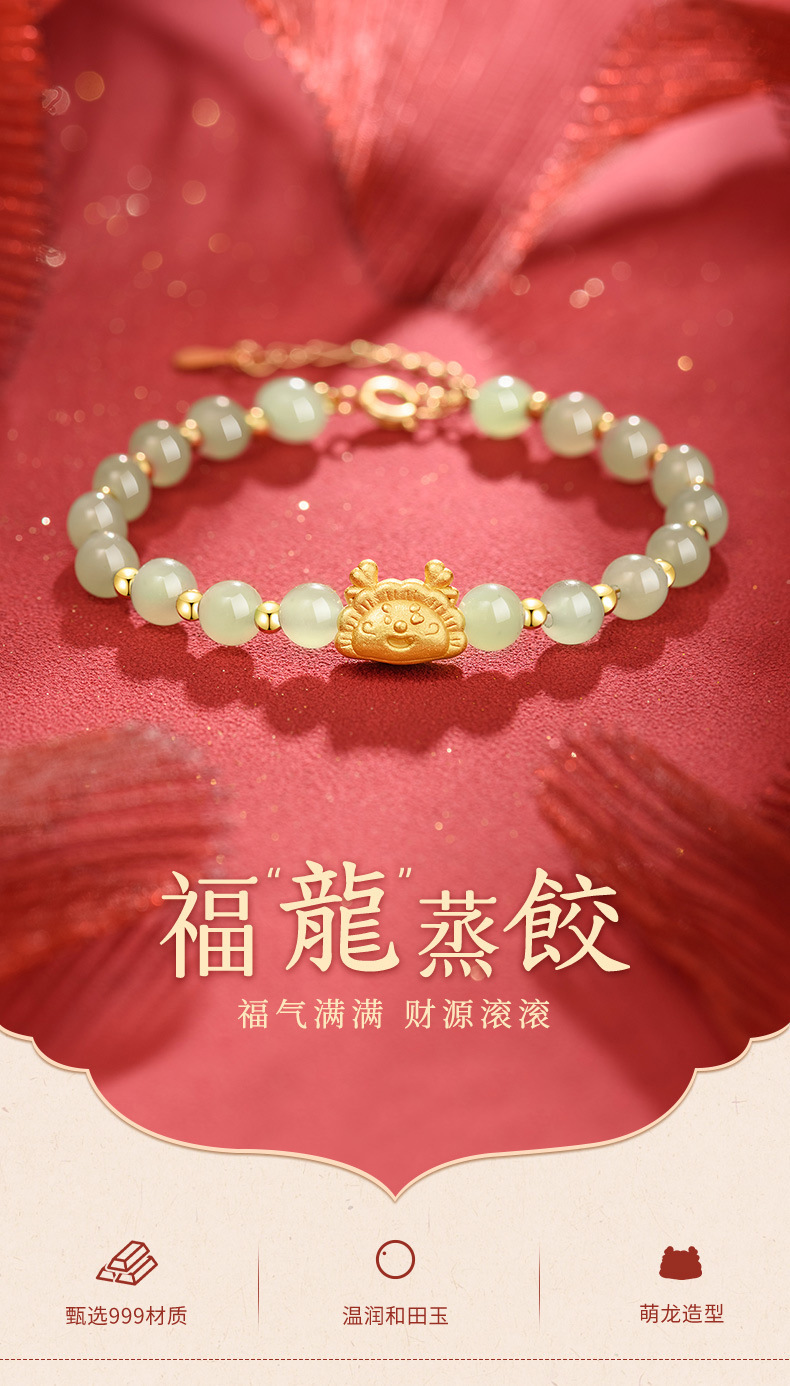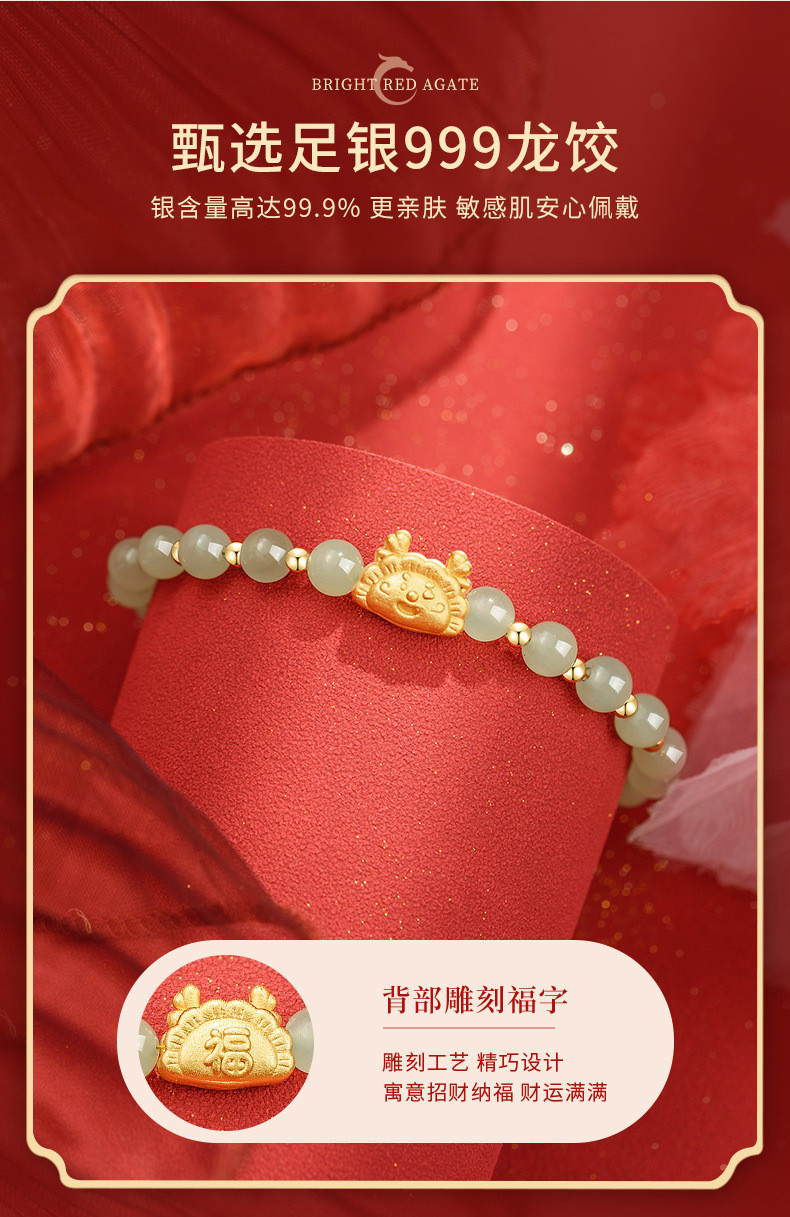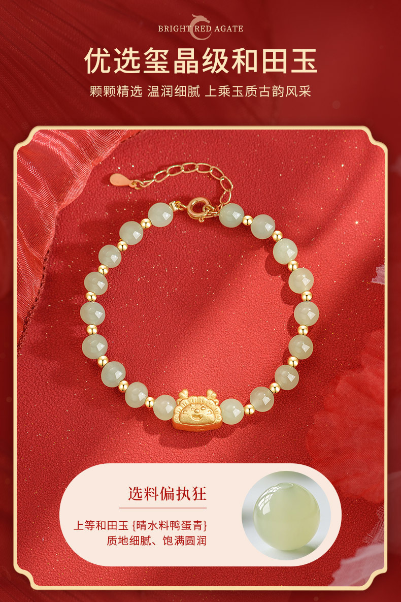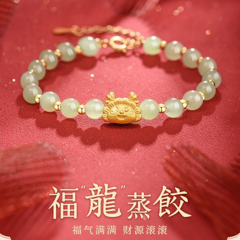 一龙蒸饺和田玉手链女生纯银新款转运珠手串龙年本命年礼物