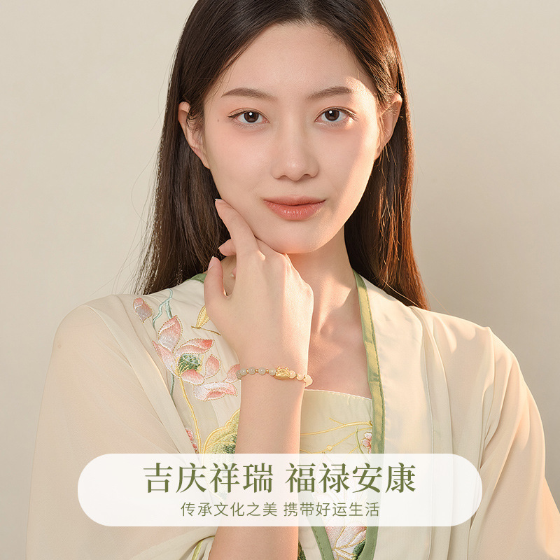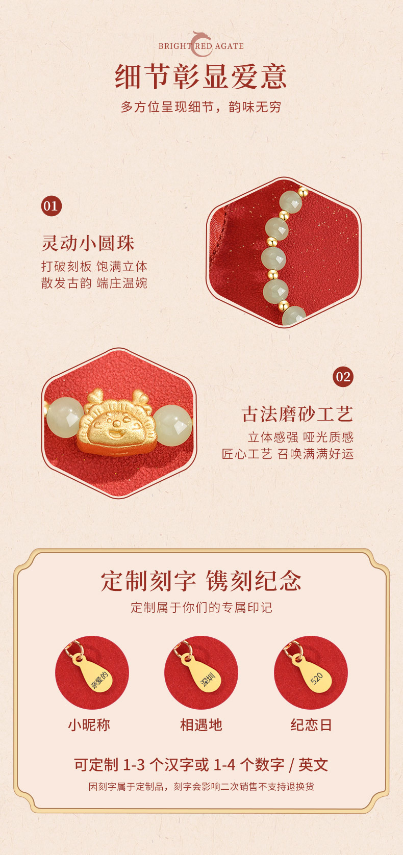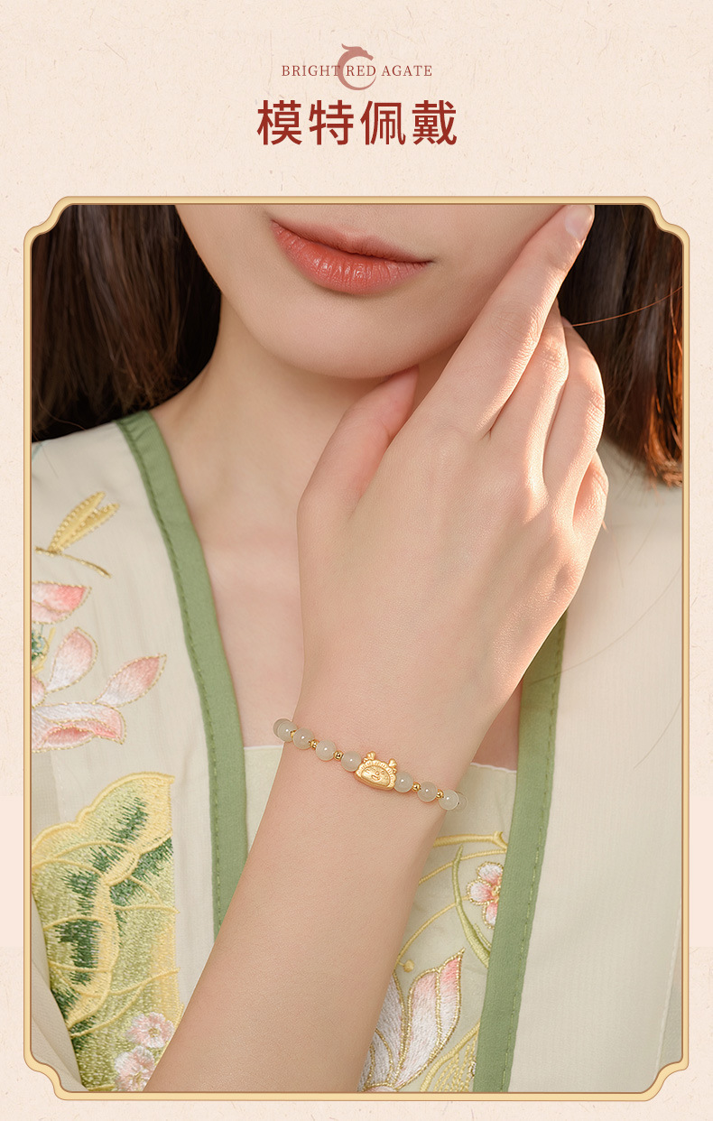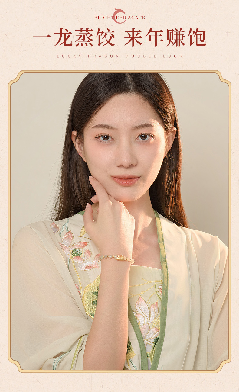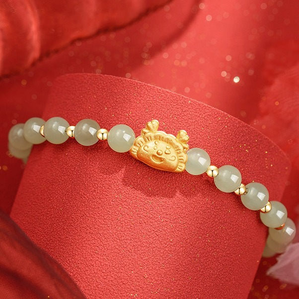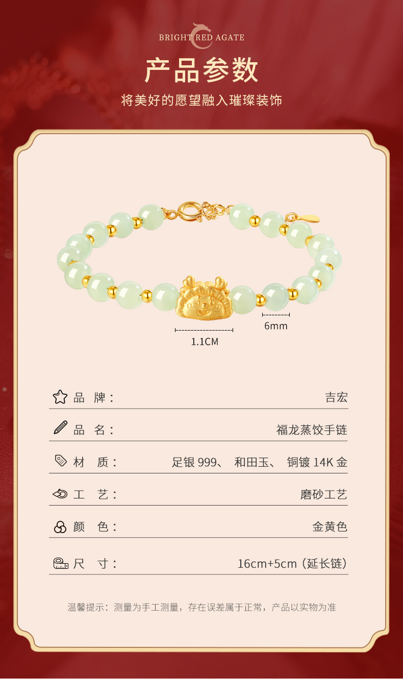一龙蒸饺和田玉手链女生纯银新款转运珠手串龙年本命年礼物