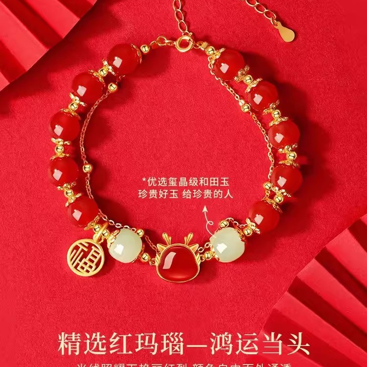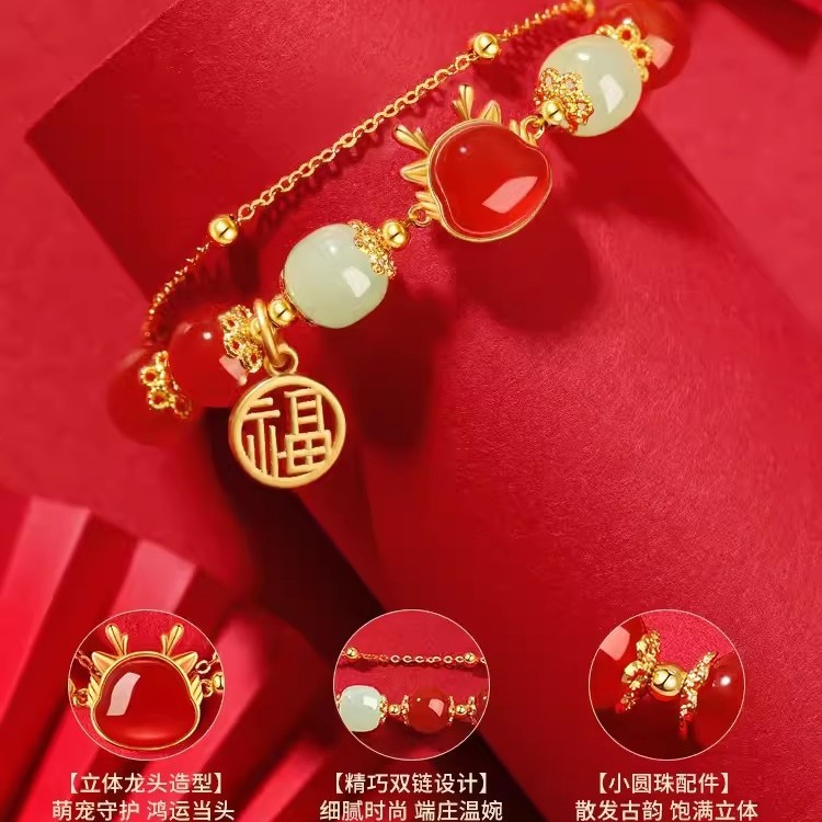 龙年本命年手链女生款新款生肖龙福牌红手串圣诞节礼物
