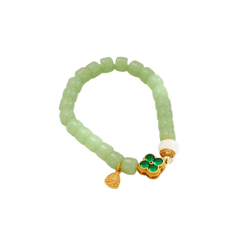 天然和田碧玉四叶草纯银手链女学生轻奢小众高级精致闺蜜串珠手饰