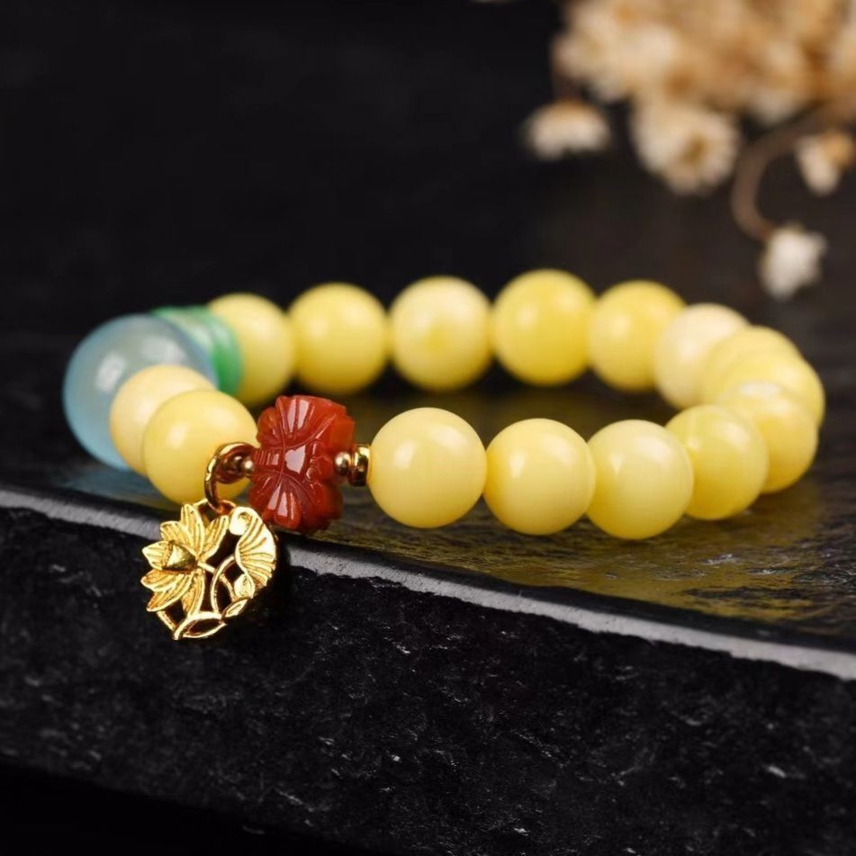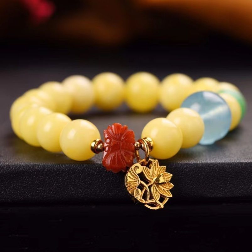 天然蜜蜡手链南红海蓝宝手串女925银厚镀金防过敏