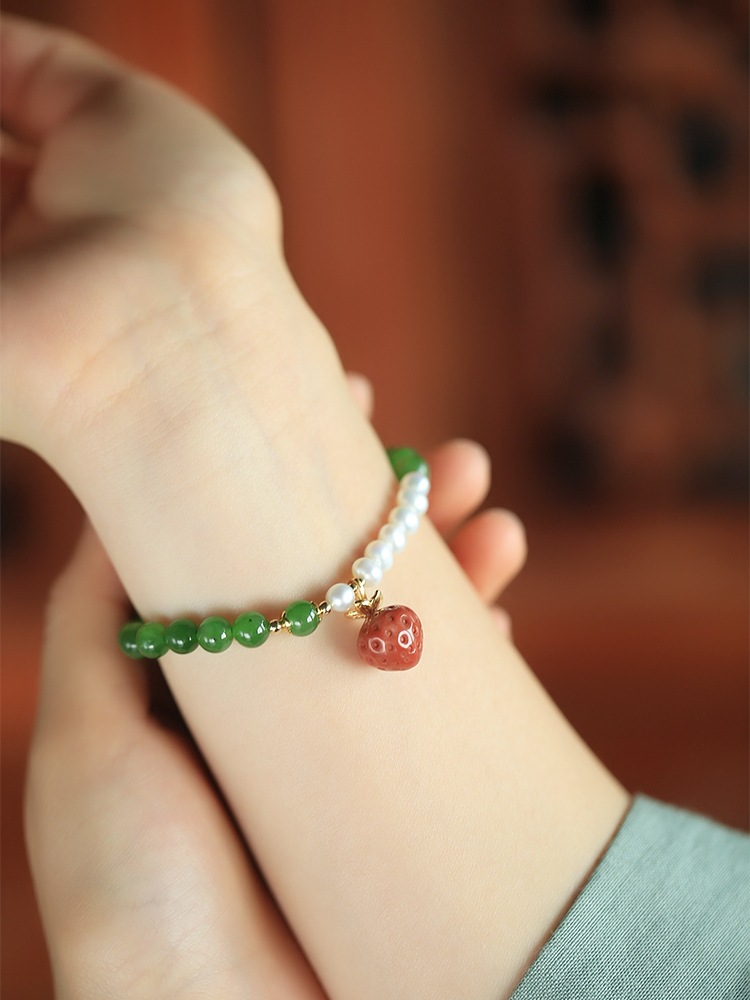 天然绿玉髓手链女民族风复珠盐源玉髓水蜜桃吊坠手串直播手饰