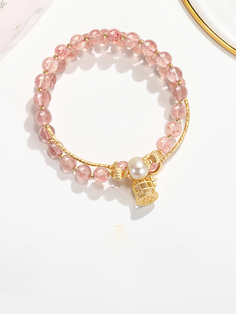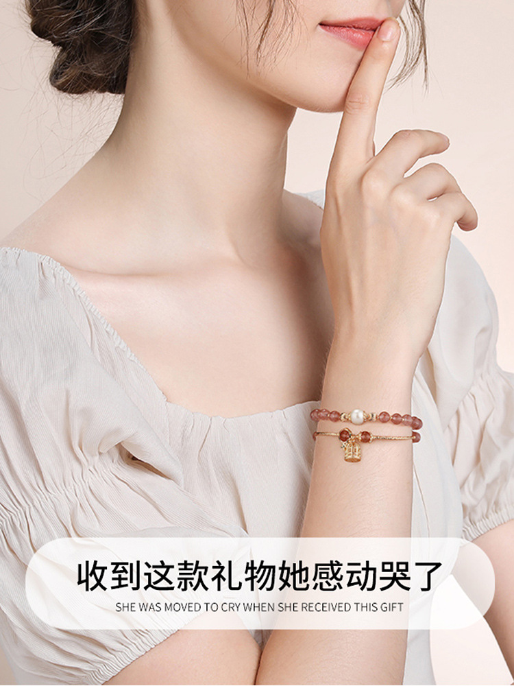 檀香阁女式草莓晶粉水晶手链生日礼物清新甜美