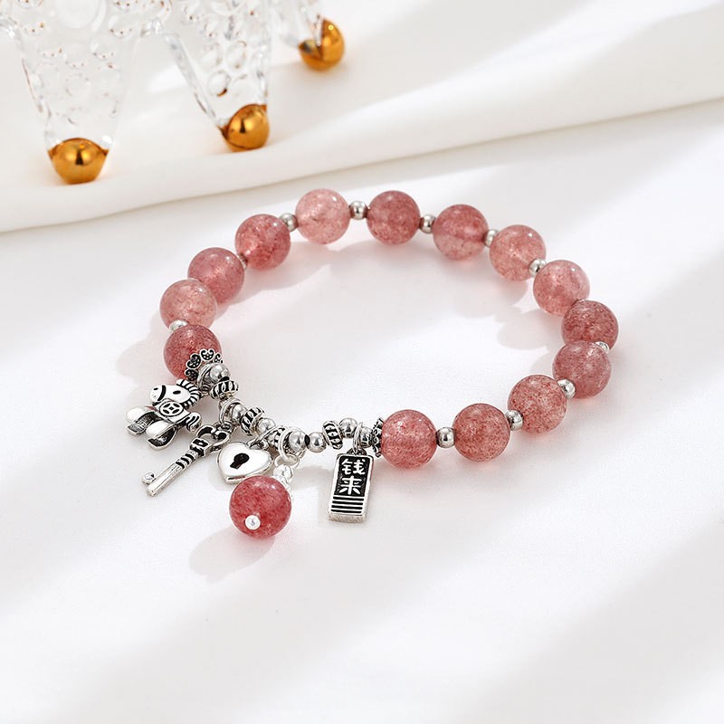 天然草莓晶纯银手链女款夏ins小众设计手串招桃花闺蜜网红手饰品