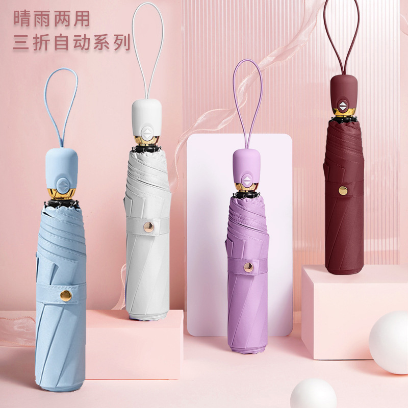 8骨黑胶遮阳防晒防紫外线太阳伞女高级感自动折叠两用晴雨伞