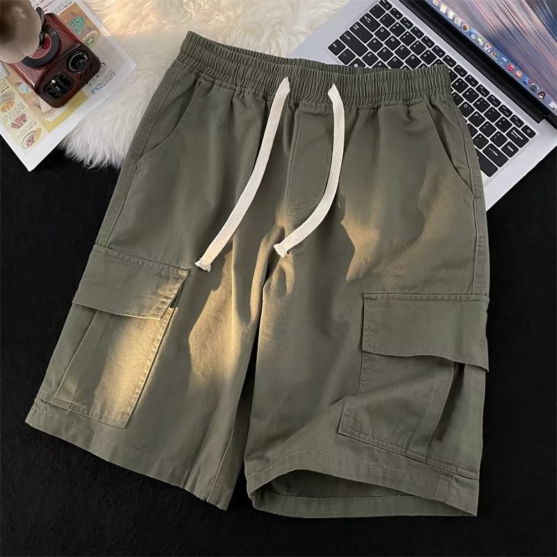 复古斜纹工装短裤男生夏季薄款速干抽绳直筒裤宽松阔腿休闲五分裤