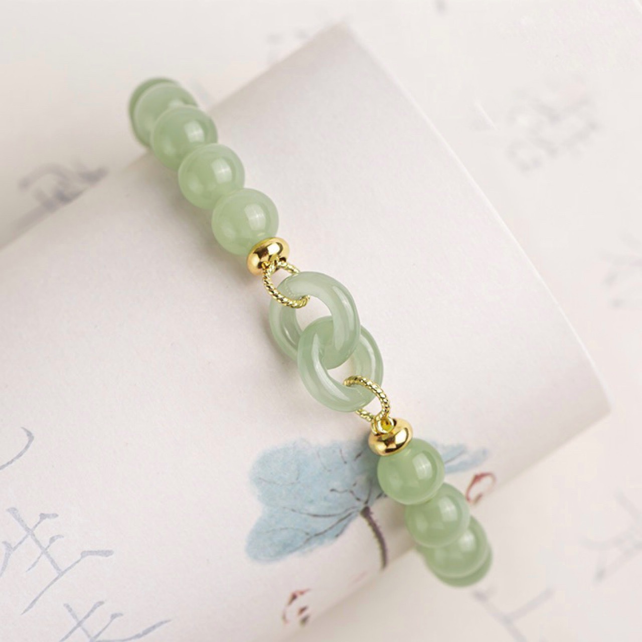 天然和田环环相扣手链手串平安扣轻奢小众女生双环串珠